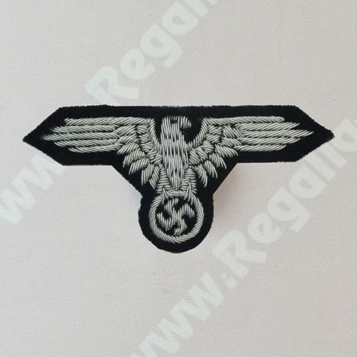 Silver arm eagle on a black backing, as worn by German S.S. Officers in WW2.